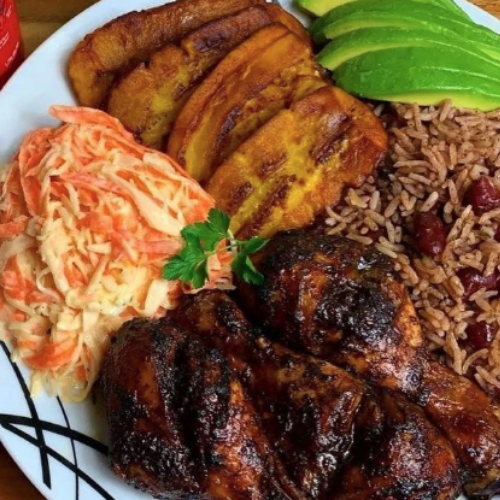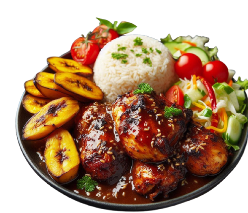 The Jamaican Jerk Chicken Meal embodies this spirit, bringing the rich, smoky heat of Caribbean jerk seasoning to to you with love. Served with perfectly seasoned rice, crisp salad, and golden-fried plantains, this dish delivers an authentic island experience with every bite.